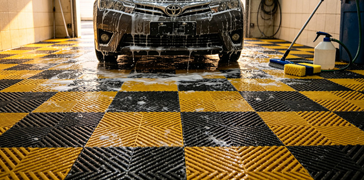 5cm Thick Interlocking Car Wash Floor Grate, Non-Slip Plastic Drainage Grid Mat for Auto Detailing Shop